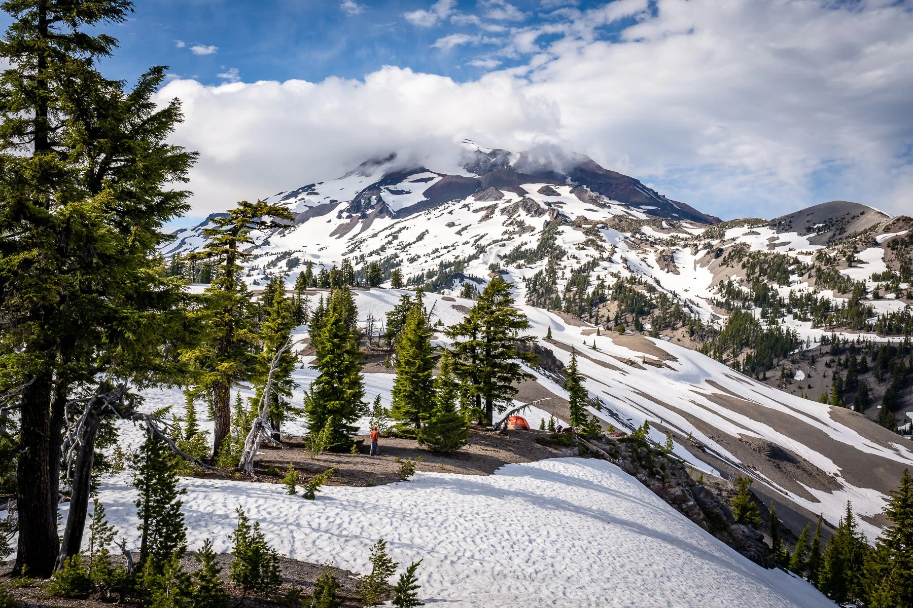 View of Mount Bachelor from the South Sister Climbers Trail. Our tent is on the first hill.